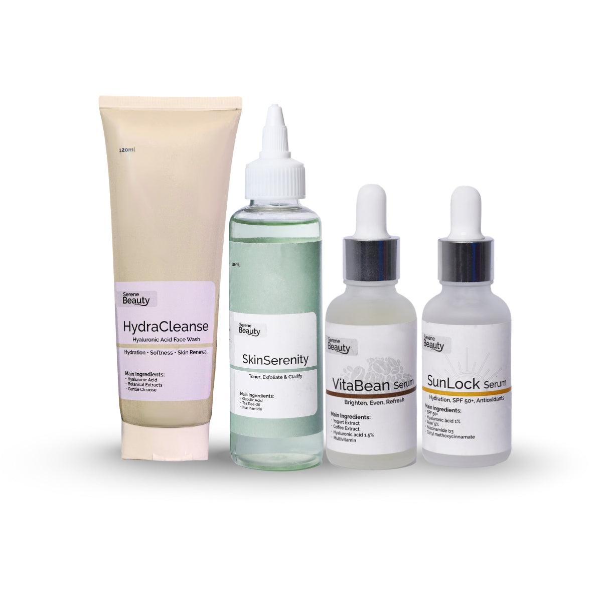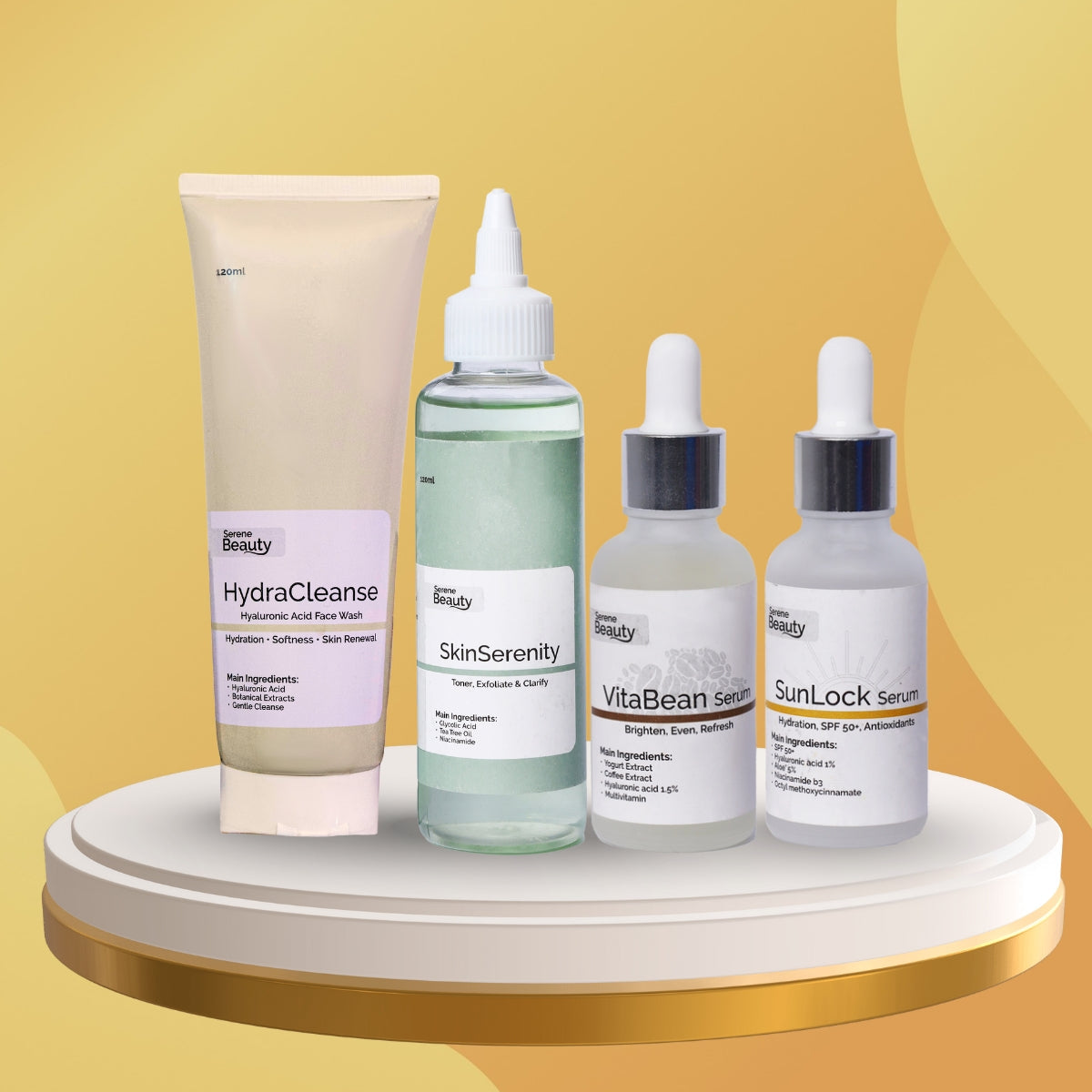 ✅ SunLock Serum (35ml) – SPF 50+ with Niacinamide & Aloe Vera for daily sun protection without the greasy feel.