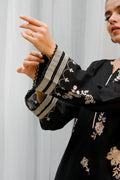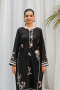 This article consists of a solid 2-piece set with an intricate embroidery detail touch on the shirt. The outfit consists of a long-length style shirt and fitted pants.