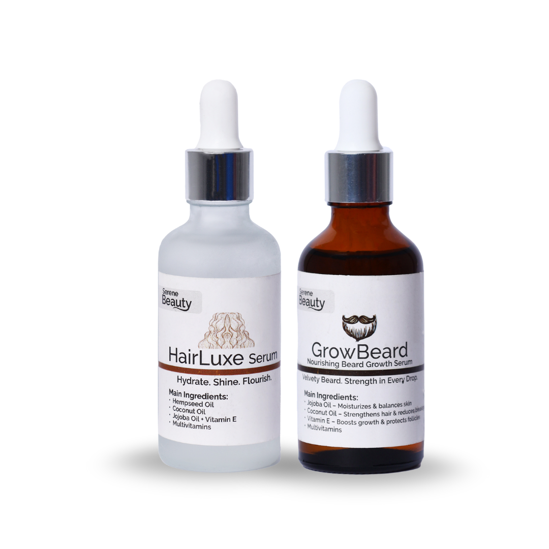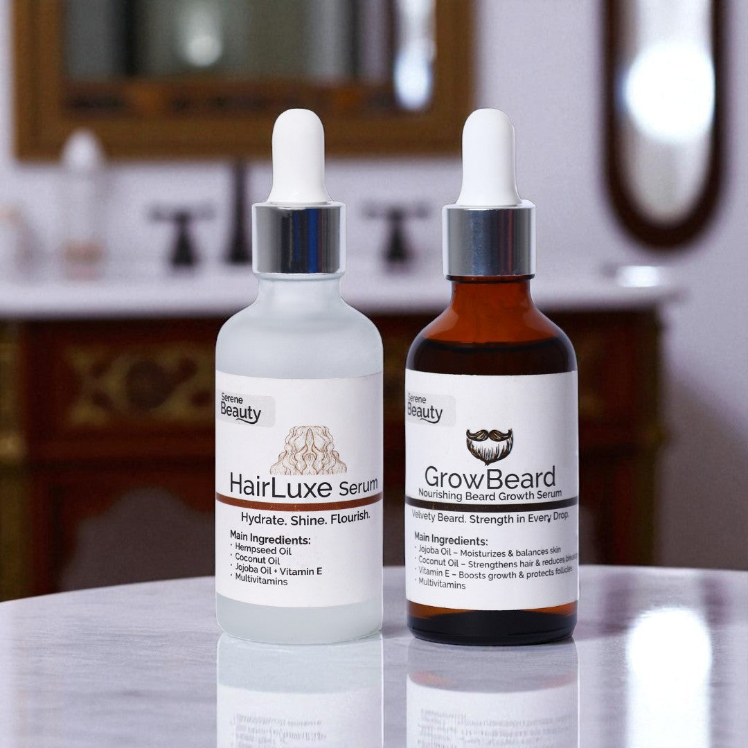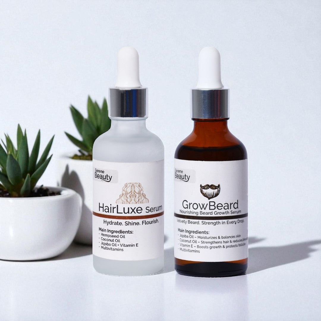 This bundle features our two most effective grooming products: Grow Beard Serum and HairLuxe Serum — made for men who care about results, not fluff.